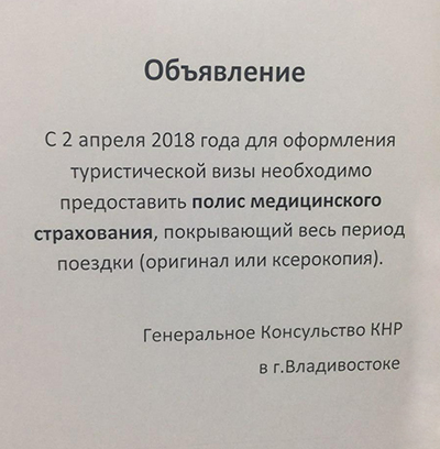 Главная страница ⇒ Оформление визы в Китай (КНР) Важные новости